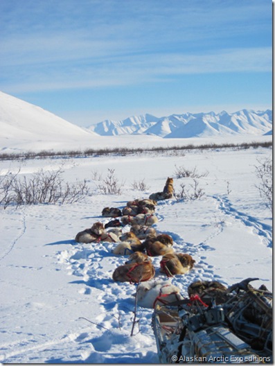 The dogs have been doing great. They’re all pulling with a lot of heart. Even the rookies (Luna, Ben, Roxy, Bear Jr. and Jim) are pulling like old pros. Rumor has it Roxy was kind of a wild child at the start of the season, but it didn’t take her long to settle into expedition life. She learned very quickly the value of conserving her energy and maintaining focus on working.